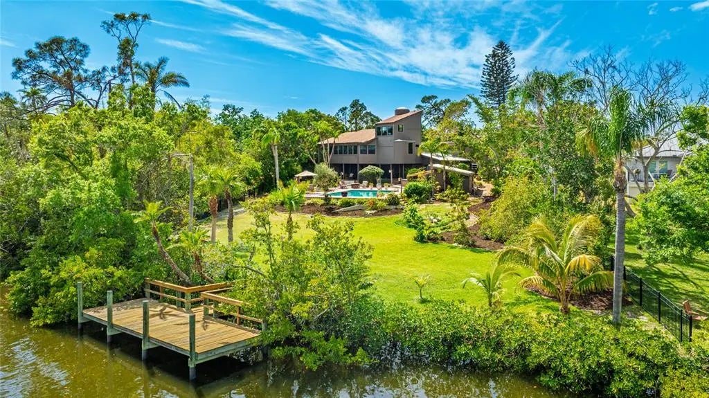 Welcome to your private creekside oasis. A true retreat-like estate nestled on over an acre of lush, waterfront property in the heart of Sarasota. This extraordinary 5 bedroom, 6 bath contemporary estate spans nearly 6,400 square feet under air, includes a Pool House and features additional detached garages, large enough to accommodate 8-cars or studio/workshops — perfect for collectors, creatives, and adventure-seekers alike. With no deed restrictions, no HOA, and no flood zone, this is the ultimate expression of freedom, privacy, and luxury living.