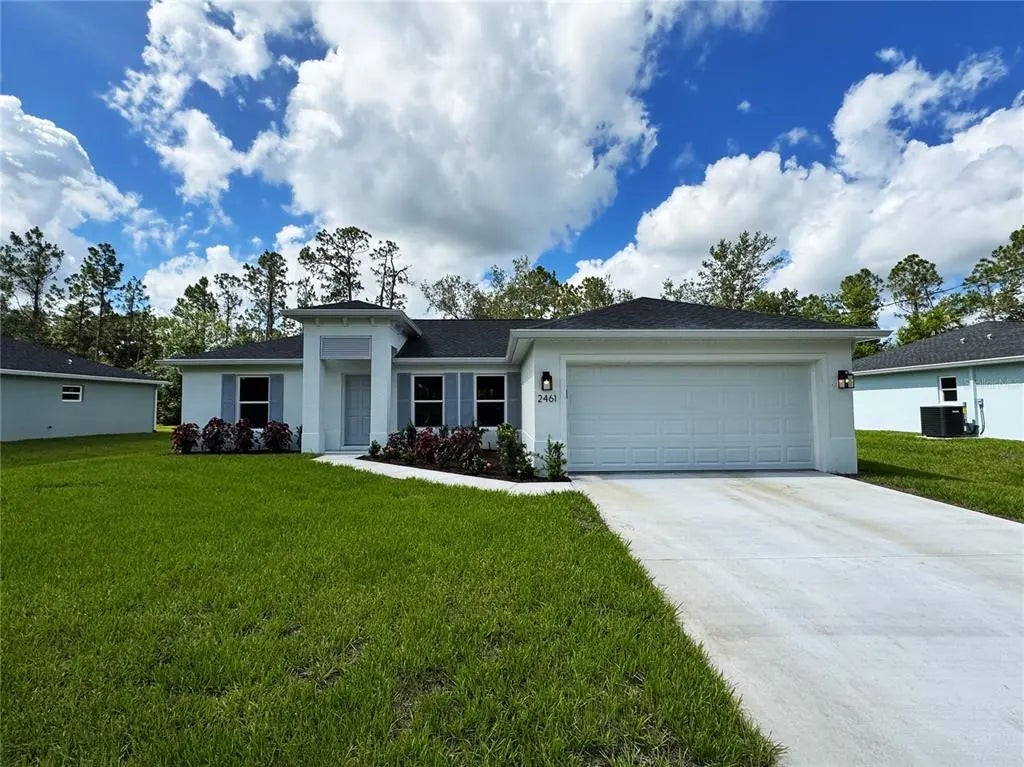 One or more photo(s) has been virtually staged. Beautiful New Construction Home Available Now! Everything is Included and Everything is Upgraded! Starting with an open, split floor plan with vaulted ceilings, this home has Hurricane Impact, insulated, low e windows, full overlay cabinets, stainless steel kitchen appliances, quality stone countertops and window sills, porcelain tile throughout, 30-year shingles, 3 zone sprinkler system, screened lanai, brand name plumbing and electrical fixtures, fully sodded and landscaped. This home has been built to keep insurance, maintenance and utility costs low. Preferred lender is offering up to $1,500 in closing cost assistance! Come see this New Home today!