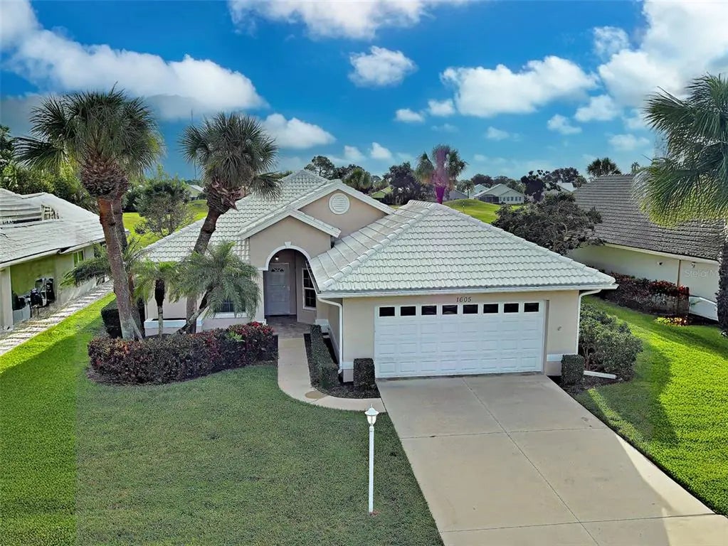 Enjoy resort style living in this single family golf course home in Waterford. Located on a "maintenance light" cul-de-sac, this home is perfect for either year round residents or snowbirds. At approximately 2,000 square feet of light filled living space, with two spacious bedrooms, a versatile den and two full baths all set on the serene backdrop of Waterford Golf Club. Step inside and feel the sense of openness and elegance. Hard surface flooring throughout, Hurricane Impact Windows, and an enclosed lanai with awesome views. Smart home features include wi-fi enabled ceiling fans, lighting and thermostat. Exterior painting was just completed in 2024, water heater replaced in 2023, tile roof is just 9 years young and home is located in flood zone X, so no flood insurance is required. Say goodby to yard work and enjoy the amenity rich community of Waterford. The clubhouse, hard-tru tennis courts (4), fitness center, pool, spa and "under construction" pickleball and bocce courts are right down the street. Waterford Golf Club is right here also, offering optional memberships or pay to play access along with a welcoming clubhouse that serves lunch daily. When it comes to location, it simply doesn't get much better. Gulf beaches and downtown Venice are just 4 miles away. Schedule your private showing today.