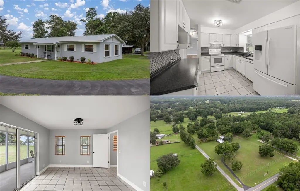 Seller will give buyer a $25,000 credit for perimeter fencing! Welcome to your dream home nestled on 4 picturesque acres, adorned with majestic oak trees that offer both beauty and shade. Literally 5 minutes or less from the World Equestrian Center. This charming 3-bedroom, 2-bathroom residence combines comfort with practicality, making it an ideal retreat. The freshly painted exterior and interior give the home a bright and welcoming atmosphere, while the durable metal roof ensures longlasting protection.Step inside to discover tile as well as laminate floors that flow throughout, no carpet, providing a modern and low-maintenance living space. The spacious living areas are perfect for relaxing or entertaining, with large windows that allow natural light to flood in, enhancing the serene views of the surrounding landscape.