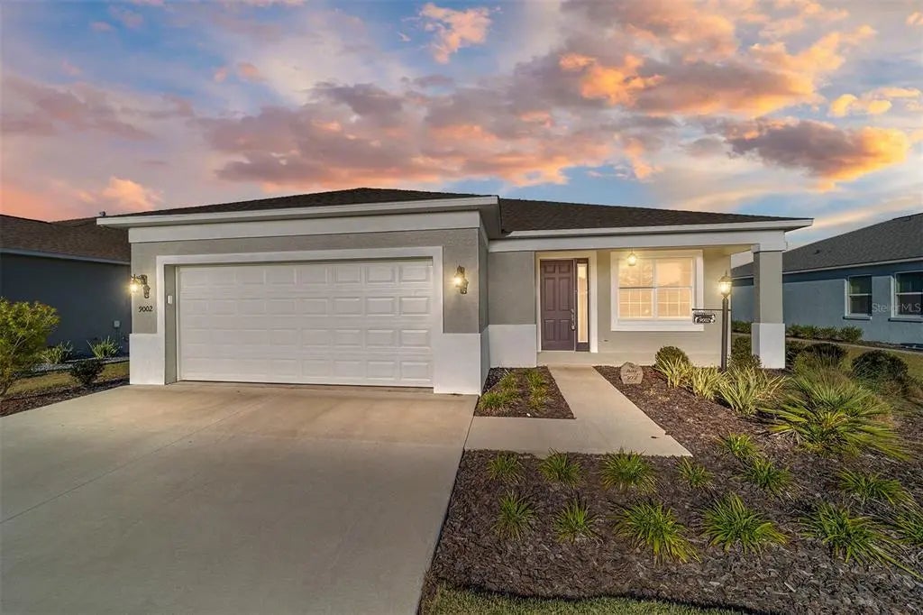 Beautiful Orchid in Weybourne Landing! Enter the home to the open sitting area that leads into the spacious kitchen. The kitchen features a HUGE island, stainless steel appliances, dark brown cabinets, tile backsplash, soft close drawers and cabinets, and a dining area in the great room. The living room area has a ceiling fan, window overlooking the lanai, and blinds. At the front of the home is the 2nd and 3rd bedrooms with carpet, ceiling fan, and closet. The guest bath has a large single vanity sink with quartz counters, and a tub/shower. The private primary bedroom is located at the rear of the home with windows overlooking the backyard, carpet, ceiling fan, walk-in closet and blinds. The ensuite bath has a double vanity sink with quartz counters, tiled walk-in shower with a bench, and a linen closet. Access the screened lanai through the sliding glass doors and enjoy the Florida Sunshine! Home also includes a transferrable 10-year warranty on HVAC. Located in Ocala's premier, gated, active 55+ community, loaded with amenities, including golf cart access to 2 shopping centers.