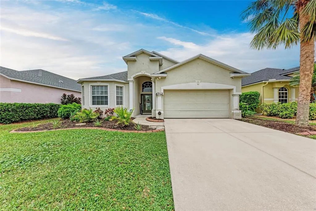 Price reduced! This bright and beautiful home offers a welcoming entry with water views from the foyer through the living room and out to the back patio. It features new flooring, fresh paint, and a spacious kitchen with two pantries, an eat-in dining area, and a breakfast bar. The split-plan layout ensures privacy in the primary retreat, while two guest bedrooms share a bathroom with an ADA-compliant walk-in jacuzzi tub/shower. The fourth guest bedroom, located at the front, has a bay window for natural light and is next to the third full bathroom. There is also a formal dining room that can be used as an office or converted into a fifth bedroom. Upgrades include a new roof (2021), new washer/dryer (2023), kitchen reverse osmosis system, water softener, and a brand-new water heater (2025). The HVAC was replaced in 2018 and serviced in 2023. The home is located in a community with a pool and amenities, with no CDD fees and no flood zone. Storm shutters are included with the home.