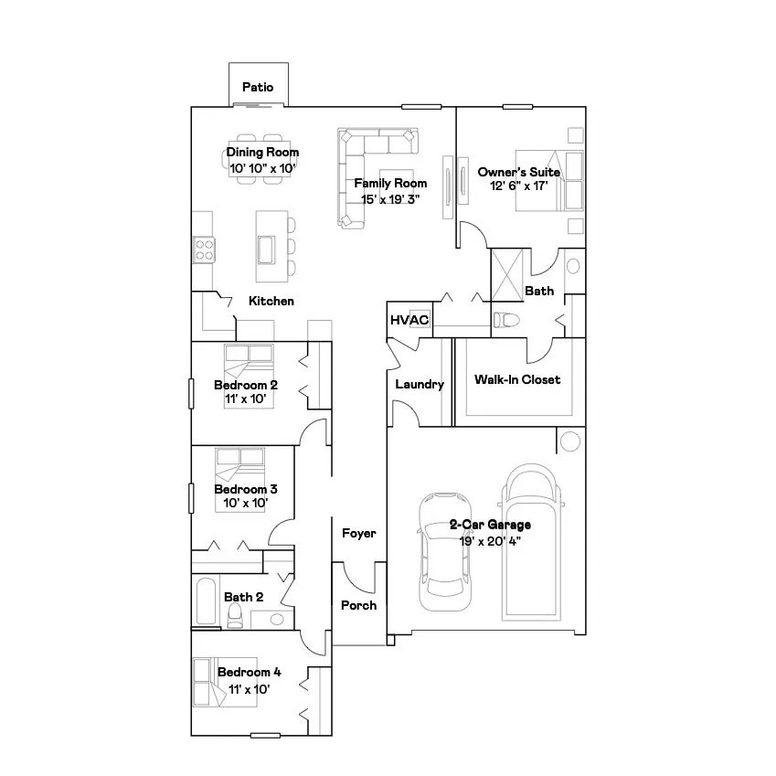 Under Construction. BRAND NEW HOME - This new single-story home is a modern take on a classic design. Down the foyer is a spacious and open-plan family room which has direct access to the cozy dining room, well-equipped kitchen and attached patio, perfect for everyday living. In a private corner is the owner’s suite with a convenient adjoining bathroom, while on the opposite side of the home are three secondary bedrooms to give restful retreats. Interior photos disclosed are different from the actual model being built. Bellamy Crossings is a master-planned community offering new single-family homes for sale in Dade City, FL. This community boasts a prime location near major highways offering convenient commutes to work or entertainment in the Tampa Bay area and easy access to Wesley Chapel’s vibrant shopping centers and outdoor recreation.