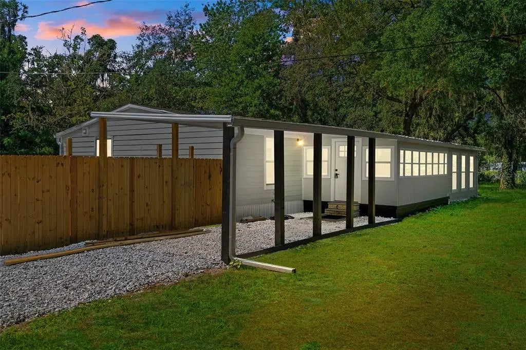 NO STORM OR FLOOD DAMAGE!!! Are you searching for the perfect rural home that's been fully remodeled and is move-in ready? Look no further! This beautiful 3-bedroom, 2-bath manufactured home could be just what you're looking for. As you step out of the covered carport, you'll find a large enclosed patio room with an additional enclosed room just off of it. Upon entering the home, you'll be immediately drawn to the stunning focal point in the spacious living room—a built-in TV wall featuring a beautiful, fully functional fireplace. The dining area and kitchen are bathed in natural light, equipped with brand-new appliances, and offer convenient access to a large new porch, which is also connected to the laundry room. To the right of the living room is the expansive primary bedroom and its elegant new bath. The bathroom features a sleek black-and-white tile design and the bedroom has a nice walk-in closet. On the left side of the living room, you'll find the two additional bedrooms and the second fully remodeled bath. This home has had significant upgrades, including a new roof in 2022, a new A/C, plumbing, septic system, flooring, and fencing in 2024. Located just off I-75, only an hour north of Tampa, this quiet, country-like setting offers no HOA or deed restrictions. There's also plenty of space to park your RV, boat, or other recreational vehicles. Do you picture yourself relaxing on that amazing back porch, just call today to arrange a viewing!