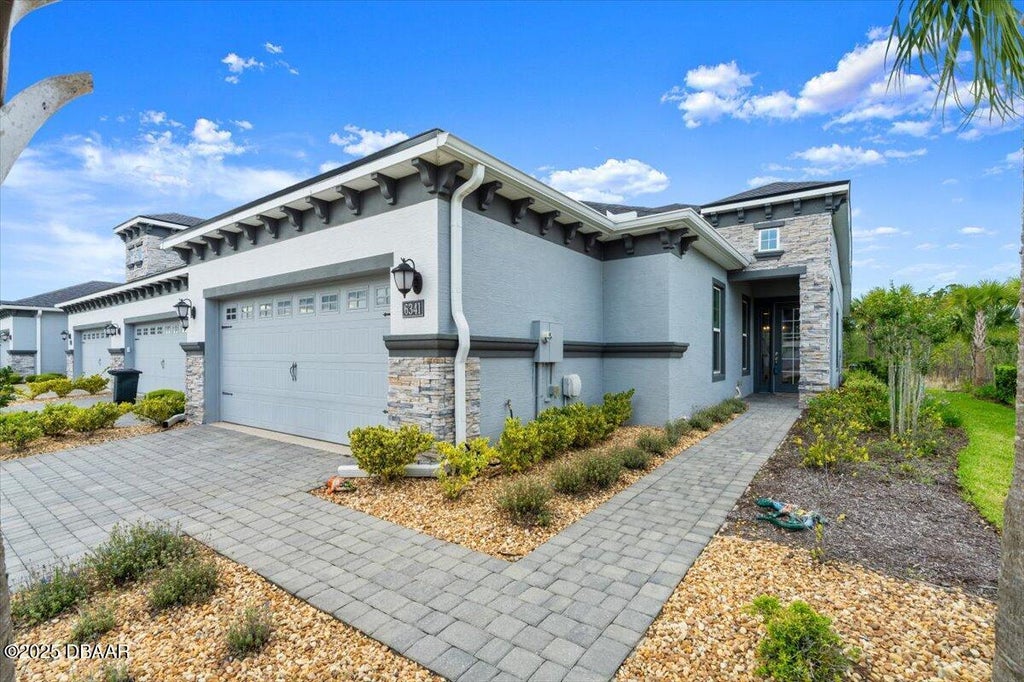 MOVE-IN READY | 1-STORY CORNER VILLA | 2BR + DEN | 2BA | 2-CAR GARAGE | GATED COMMUNITY - PORT ORANGE This immaculate 1-story corner villa offers the perfect blend of low-maintenance living, quality construction, and modern upgrades—all nestled in a gated community in highly desirable Port Orange, zoned for top-rated Spruce Creek schools. Built with concrete block construction, this home features an open-concept layout ,boasts 10' ceilings, 8' interior doors, and gorgeous wood look plank flooring throughout the main living areas, and a Striking stone accent wall creating an elegant living environment. The chef's kitchen is a true highlight, featuring: 42'' custom cabinetry with soft-close drawers and pull-out shelving, Under-cabinet lighting and tile backsplash, and Quartz counter tops. Plantation shutters adorn all the windows for a very clean and sleek look. The primary suite offers a serene retreat with: Large double-sink vanity with wide-spread faucets,Private water closet, Frameless glass walk-in shower. Enjoy outdoor living year-round on the covered and screened lanai, which backs to conservationoffering both privacy and natural light throughout the home. Additional features include: Brick paver driveway and walkway Recessed lighting