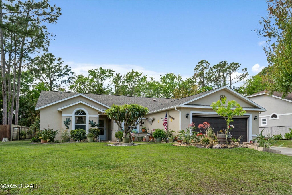 Spacious and well-maintained 3-bed, 2-bath home with 1,896 sq. ft. of living space! Enjoy Florida living with an electric garage screen (2022) and a relaxing Florida room. Kitchen features granite counters, oak cabinets, pantry, and fire door (2021). Owner's suite has 10x10 walk-in closet, Jacuzzi tub, and separate tub/shower. Recent upgrades: roof & skylight (2021), water heater & shower valve (2022), generator outlet (2024). Guest bath includes tiled shower; window balances and sash slides updated (2021). Vaulted ceilings add spaciousness. Garage has new LiftMaster opener, door & cables (2022). New AC installed June 2025 with 10-year warranty. Enjoy a landscaped yard with 10x10 gazebo, oversized shed, fenced backyard with 2 extra gates, and a well for irrigation. High and dry location—close to beaches, schools, stores, and miles of Palm Coast trails. Don't miss this gem! Step outside to a beautifully landscaped yard with a 10x10 gazebo, an oversized shed, and two extra gates on the fenced backyard. Plus, a well for keeping the yard green! This home is high and dry! Close to the beach, stores, schools and the many miles of walking paths throughout Palm Coast. Don't miss out on this gem!