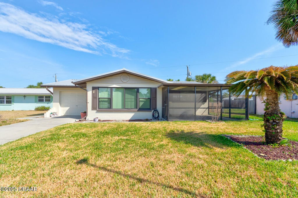 One or more photo(s) was virtually staged. Ormond by the Sea Beachside Retreat - Move-In Ready! Embrace coastal living just steps from the sand in this hurricane-ready 2-bedroom, 1.5-bath gem. This thoughtfully upgraded home features impact windows with a lifetime warranty and a 25-year metal roof for peace of mind. Inside, enjoy an open layout with two inviting living spaces, an enclosed porch, and a beautifully remodeled kitchen with quartz countertops, rich wood cabinetry, and a spacious pantry. The second bedroom includes custom twin Murphy beds—perfect for guests or a flex space. Additional highlights: a new A/C (2017), oversized 1+ car garage, large storage shed with loft, and a private outdoor shower. Located just a short walk from the newly fortified shoreline and beach walkover at the end of the street, this is Florida living at its finest. Owner willing to make concessions toward updating the living areas. Please make an offer!
