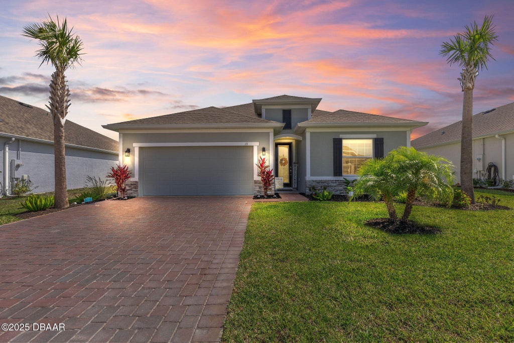 This absolutely gorgeous home is located in Huntington Green at Hunters Ridge, a lovely 55+ community in Ormond Beach, Florida! This nearly new home is in pristine condition, eagerly awaiting new owners to make it their own. The kitchen features soft-close cabinets and quartz countertops. The white subway tile backsplash beautifully complements the cabinets, creating a timeless yet sophisticated appearance. The owners invested significantly in upgrades, including crown molding, 6-inch baseboards, 9-foot ceilings, and tray ceilings in both the entry foyer and the primary bedroom. Luxury vinyl plank flooring extends throughout all the main areas of the home, while cozy carpeting graces the bedrooms. With four bedrooms and three full baths, there is ample space for guests. Each bathroom features quartz countertops. The primary suite is incredibly spacious, featuring picturesque views of the pond. The bathroom is equally roomy, equipped with a soaking tub and a walk-in shower. You'll find ample countertop space along with numerous drawers for storage. A walk-in closet completes this space. Enjoy your morning coffee on the screened lanai. In the evenings, savor cocktails on the patio while watching the sun set over the pond. This property offers ample space to entertain, both indoors and outdoors. Huntington Green amenities include its own pool and clubhouse, and you also have access to the pools at Hunters Ridge. And best of all, your yard is maintained by the HOA so sell the lawn mower! Savor the vibrant community around you, with the beach, shopping, and great restaurants just minutes away!