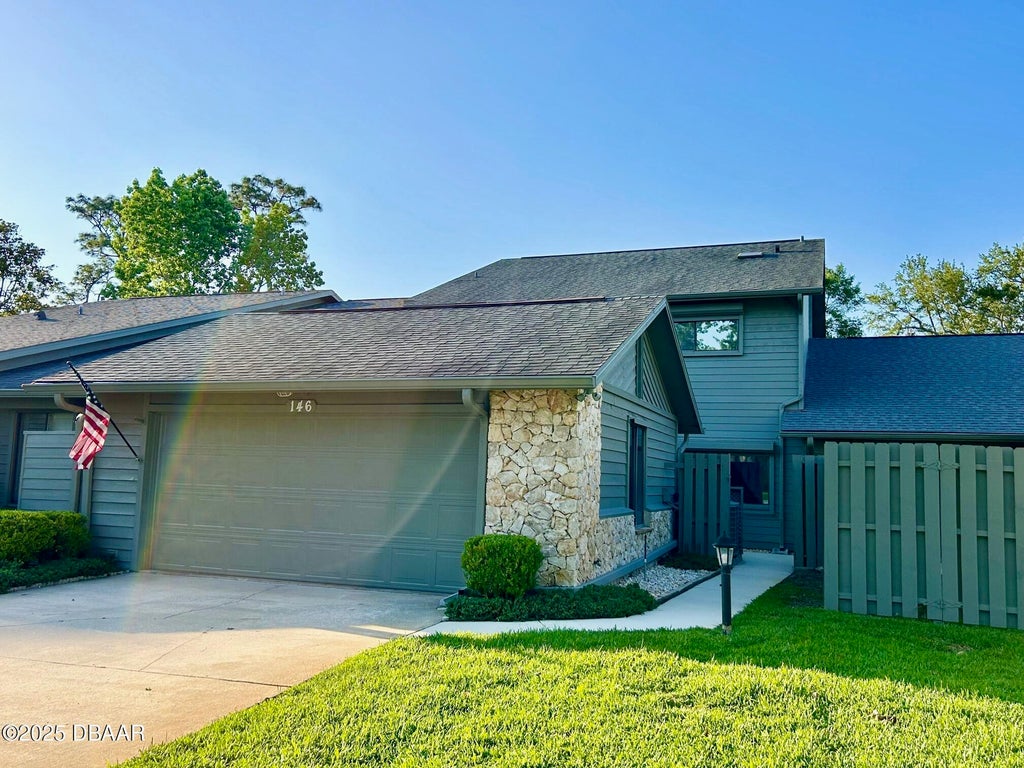 BEAUTIFUL AND SPACIOUS!!! - HUGE townhome with 2-car garage and 2,570 living square feet! This open 2-story unit features 4 bedrooms, 2.5 baths with accented stone fireplace and skylights. In one of Ormond Beach's top communities, the courtyard entrance is inviting! Kitchen has newer stainless appliances, a breakfast nook with 2 pantries. First level master suite highlights double vanity, lots of closet space with ambience views of patio and green space. Exterior Paint 2024. Roof 2018. Hurricane protected home with accordion and hand crank hurricane shutters. Washer and dryer included. Community amenities: pool, clubhouse, tennis and pickleball! Bring your dogs and cats! Seller is motivated with the lowest priced 4-bedroom unit available!! Reasonable HOA fees, great unit and super location! Come check it out!!