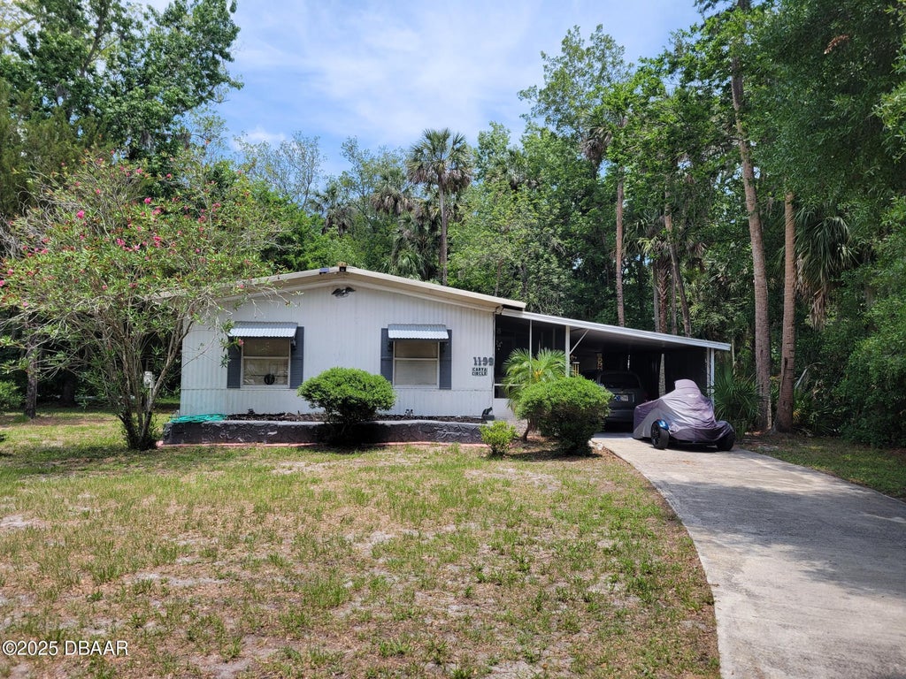 No Lot Rent - No HOA Fees - You Own the Land! Welcome to this charming home located in the desirable Twin Gates subdivision. Situated on a Corner lot, this property offers an extra-long driveway and host of upgrades including a metal roof, newer water heater, PVC plumbing and Central heat & air. Inside, you'll find 3 bedrooms 2 bathrooms, a eat in kitchen with updated countertops, cabinets and a built-in microwave for added convenience. The home features a separate dining room & a generous living room for entertaining. Step outside to enjoy the front screened porch & patio. There's also an oversized shed & workshop with washer & dryer hookups conveniently located off the carport. Out back partially fenced oversized lot features an outdoor shower & two additional shed. Plus, there's another screened in porch just off the master bedroom - ideal for relaxing mornings or quiet evenings. If you're looking for a private backyard retreat, this is it.! Location is Cental to all your needs