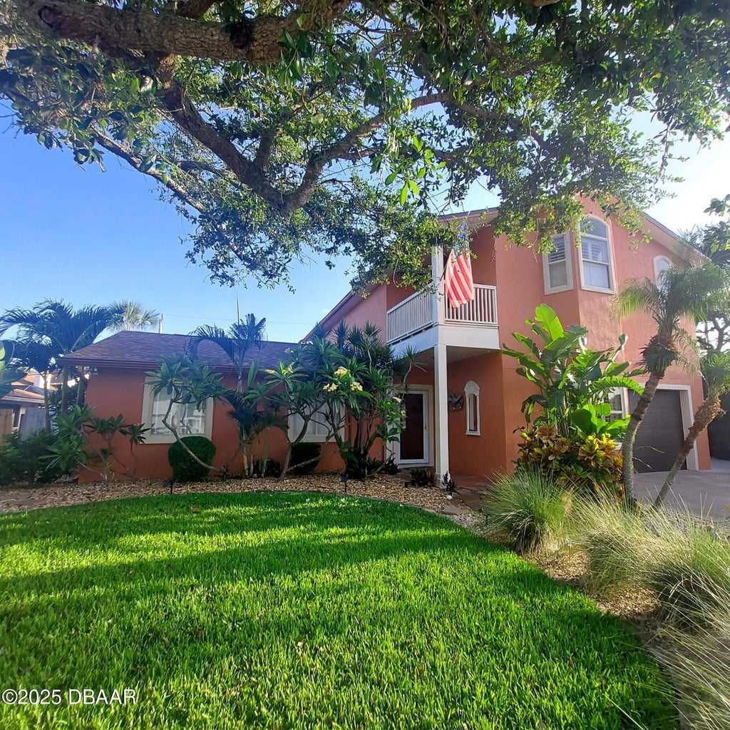 Wake up to ocean breezes in this spacious 4-bed, 3-bath home with dual primary suites—one up, one down—perfect for guests or multigenerational living. Plenty of room for all with 2,817 sqft of living, an open floor plan, formal dining, and a spacious bright family room. The upstairs suite features high ceilings, a coffee bar, huge walk-in closet, an air conditioned storage area and 2 balconies to enjoy sunsets and cool breezes. New roof, new fence, and fresh interior paint. This is an ideal retreat with lush tropical landscaping, large back deck, and an outdoor bar area that makes entertaining easy. Rinse off in the outdoor shower after walking to the beach or river. Coastal living at its best—close to shops, dining, the ocean, and Intracoastal! Fresh eggs! Chicken coup and chickens can convey.