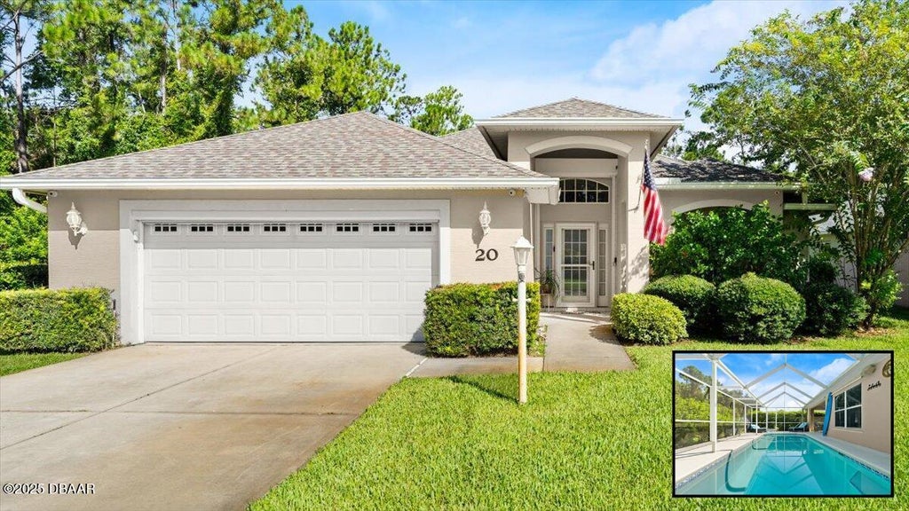 PRICED AT CURRENT APPRAISED VALUE! Johnson Group POOL home in the very coveted ORMOND LAKES subdivision! Priced perfectly and offers everything you need and more including: 2024 ROOF, heated & enclosed pool with covered lanai, 2050SF interior living space, vaulted ceilings, split bedroom floorplan, surround sound throughout, hard-wired camera system, whole home water softening system, inside laundry with built-in utility sink, and so much more. This property is uniquely situated on Stoney Ridge Ln with no neighbors behind and no neighbor to the South allowing for added peace and privacy in an already quiet, well-established neighborhood. Upon entering the home you're greeted by a grand entryway with tons of natural light. First guest bedroom is to your right and is large with an oversized closet. Living room, kitchen and dining room are all in the heart of the home and overlook the pool. Kitchen has gorgeous wood cabinetry with Corian countertops and a built-in food pantry with pull drawers for added convenience. Open dining room is just off of the kitchen and has plenty of space for your formal dining table. Kitchen also overlooks the living room with vaulted ceilings and built-in shelving. Primary is in the rear of the home, offers vaulted ceilings and has direct access to the pool. TWO huge closets, one of which is also the poured concrete and steel framed safe room, the "signature" of a Johnson Group home. Beyond the closets is your primary bathroom with his-and-hers sinks, walk-in tiled shower, and separate linen closet. HEATED, SCREENED POOL is absolutely gorgeous and the perfect size for easy maintenance. This home is NOT located in a flood zone and has had no previous flood damage. Ormond Lakes is an extremely sought-after community with a well-managed LOW HOA of $264/QUARTER and covers use of the community pool, playground, lakefront clubhouse, tennis courts, and walking trails with doggy stations/covered canopy areas. Currently zoned for the following schools: Pine Trail Elementary, Ormond Beach Middle, and Seabreeze High. 2024 roof, 2022 pool heater, 2018 water heater, and 2014 HVAC. All information and room sizes in this listing are intended to be accurate but cannot be guaranteed. Buyers and agents are always encouraged to perform due diligence.