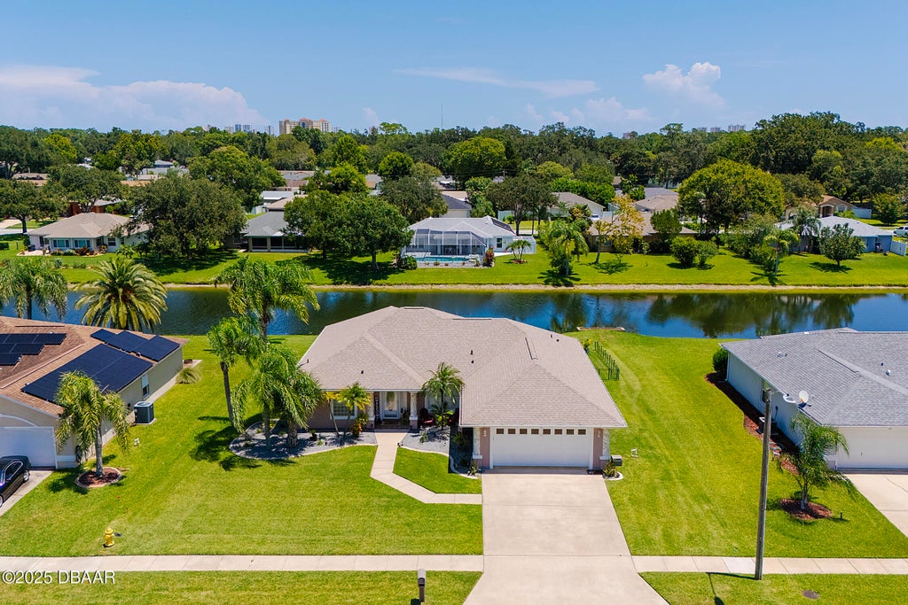 4.5 Percent Assumable Mortgage!! High & Dry!! 3BR/2BA/2CG split plan home with peaceful waterfront views, indoor laundry, and several custom features. Originally built as the builder's personal residence, this home showcases architectural niches, crown molding, trey ceilings, extended soffits, and a huge 12x30 screened porch. Recent updates include a 2024 roof with gutters, new quartz kitchen countertops/sink, garage door opener and springs, and a new granite vanity top/sink in the guest bath. In 2023, new A/C & heating system, water heater, exterior paint, water-saving toilets, and an updated primary bath granite dual sink vanity. In 2019 hardwood floors, complete interior repaint, and new ceiling fans installed. The garage was just finished with an epoxy speckled floor and a new garbage disposal was installed. You're minutes to the beach, Halifax River, parks, shopping, dining, and I-95/I-4. This home blends quality construction, comfort, and a prime location!
