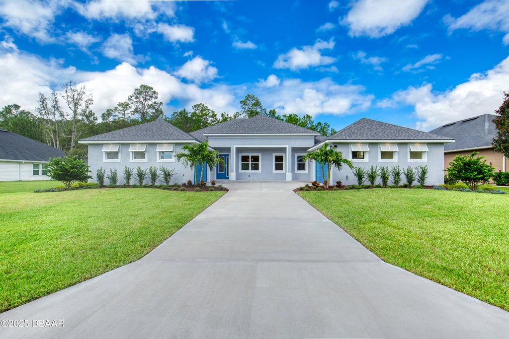 WOW, Brand New, Court Yard entry, there are (2) 2car garages and one garage has an additional storage area, Air handlers are suspended from ceiling leaving floor space. Large Front porch, enter foyer that opens to a large beautiful great room, open kitchen with large island, Great room has an electric linear fireplace, tray ceiling, a LOT OF GLASS VIA Sliding GLASS DOORS on rear will opening to lanai. Kitchen is beautiful, Wall oven, wall microwave, 36 '' electric cook top, dishwasher, Large Sit at Island. You can see the pond from lanai, conservation on rear lot line and conservation area across street of front elevation. This home has a split floor plan, with (2) HVAC units, one for each side. SURPRISE, find the study. Landscaping is lush, irrigation system, YOU REALLY NEED TO SEE THIS CUSTOM BUILT NEW HOME. Quality By Design.