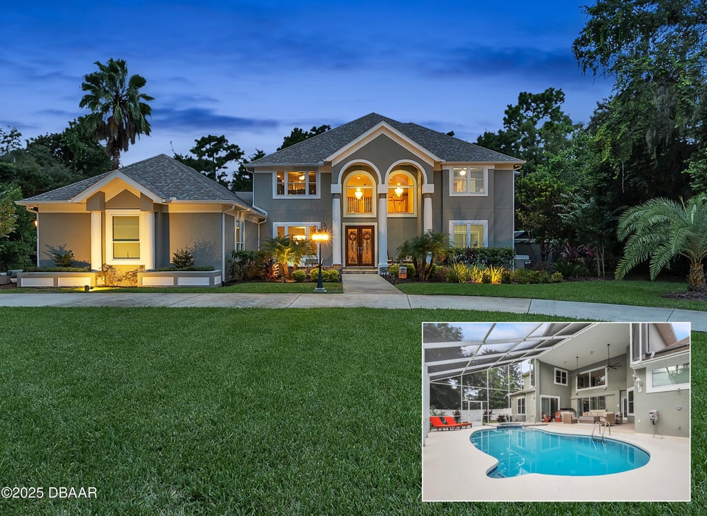 One or more photo(s) has been virtually staged. Restored to better than its original splendor, this, OVER 1 ACRE, custom Pool Estate Home in the sought after gated community of BROADWATER, in Ormond Beach, Fl. is BETTER THAN NEW. With NEW ROOF in '23, NEW WINDOWS & SLIDERS in '23 (with lifetime warranties), NEWLY PAINTED in & out, NEWLY FINISHED LANAI in '23, NEW PAVERED FRONT PORCH in '23, NEW HOT WATER HEATERS in '24, Restored septic w/ NEW TOP in '23, new 250 Gallon propane tank '25, New POOL HEATER in '24, new POOL CONTROLS wi fi '25,newly TILED & RESURFACED POOL in '25, GE MONOGRAM appliances & newly serviced A/C units. As you enter the very large circular dr, you pass through mature and newly landscaped ('23) yard with its newly installed fountain that centers the massive front yard. To the left is the oversized 3 car garage with its own ''courtyard'' driveway offering even more parking, when needed. As you approach the front entry, you walk through the newly landscaped the newly landscaped and pavered front porch ('25) and are greeted by new, massive 8' custom glass, double front doors, that hint to the quality and value, of this amazing estate home. Massive and elegant foyer with 20' ceilings give way to an amazing wood stairway and living room with built in shelving, wet bar and pocket sliders opening to the pool-the view from the front doors is amazing. Ceiling fans well-appointed, everywhere (at least 10) To the right, formal Dining w/amazing fixtures. To the left is the gourmet kitchen with 6 burner gas stove, wall ovens, a pantry big enough to live in, professional chimney hood vent, subzero style fridge/freezer and dishwasher-pro level Monogram by GE. Beyond the Soapstone solid counters and breakfast bar w/vegi sink, is the well-appointed Family room with remote control gas fireplace as the centerpiece, framed by high windows, built in shelving and new sliders, letting in lots of light and leading you to the outdoor entertainment area. Large, covered lanai offers a full summer kitchen with gas grill, fridge, sink and burner, and a gas firepit to warm those cozy outdoor gatherings. 15x30, newly surfaced & tiled, Solar & gas heated pool w/spa is something to always look forward to. To the side of the kitchen and family room is an elegant breakfast nook bordered by decorative niches. The master and a guest room compliment the first floor. Master bath has jetted tub, upgraded shower, water closet & bidet room, and separate granite vanities & master bedroom opens to lanai as well. All tile floors down, wood floors up, no carpet in this home. Up the elegant wood stairs reveal the bridge to the second master/train/rec room with it's in suite bath, 148 sq ft storage closet and spiral service stairs to kitchen. 2 other guest BRs share the Jack and Jill bath and another BR with it's own bath, complete the hardwooded 2nd flr. Laundry has upgraded sink, cabs, & closet for practicality and don't forget the OVERSIZED 3 CAR GARAGE (39'x23'), w/high ceilings and built ins and attic stairs and space. Irrigation well on timer will keep landscape beautiful. The 2nd master photo (aka train rm) is virtually staged. At $272/sq ft, not only is this one of the most elegant and functional homes on the market, it is a great value as well. Don't forget the common walk to the dock on the Tomoka River. Close to shopping,Golf, Tennis, Beaches, & Houses of worship... St Augustine, Daytona, Winter Park Punte Verdra, Jax and more..., Come see for yourselves as this one will not last.