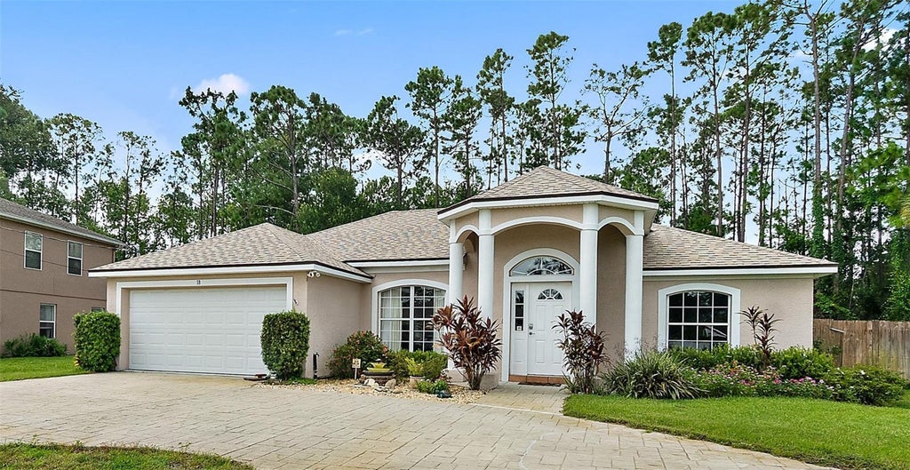 WOW !!! Solar powered electric home with three bedrooms, two baths, two car garage. Screen enclosed saltwater pool that was resurfaced in 2025. Pool salt cell recently replaced and the pump is variable speed. Covered lanai for entertaining. New roof 2023. Oversize primary bedroom with jetted tub in primary bath, separate shower and double lavatories. Water heater three years old. Aquasona water softener. Granite kitchen countertops. Stainless steel appliances. Pantry in kitchen. Refrigerator, washer, and dryer stay. Bathroom has a door that leads out to the pool patio. Solar attic fan. Ample parking with the half circle driveway. Fenced yard. Nice storage shed in backyard with matching roof shingles. Sprinkler system is on well with pump. Great part is conservation area behind the home so very private backyard. Nearby is schools, shopping, retail, banks, doctor offices, hospital, movie theater, several golf courses, restaurants. Very clean and well maintained home. Move in ready. “ LIFE IS GRAND IN PALM COAST “ LET’s TALK !!!